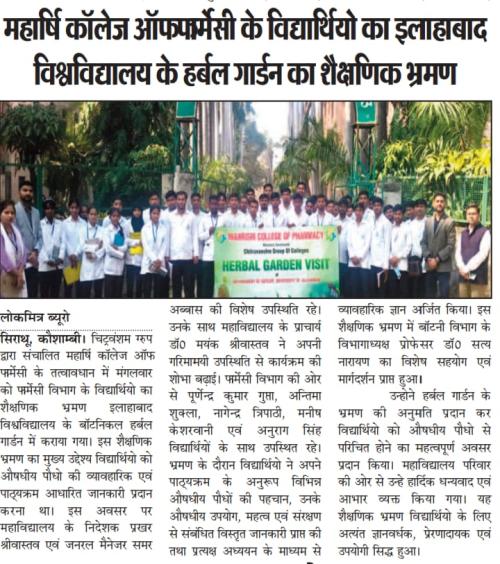 LOKMITRA BUREAU MEDIA COVERAGE OF MAHARISHI COLLEGE OF PHARMACY - HERBAL GARDEN VISIT - AT DEPARTMENT OF BOTANY UNIVERISTY OF ALLAHABAD - 2026