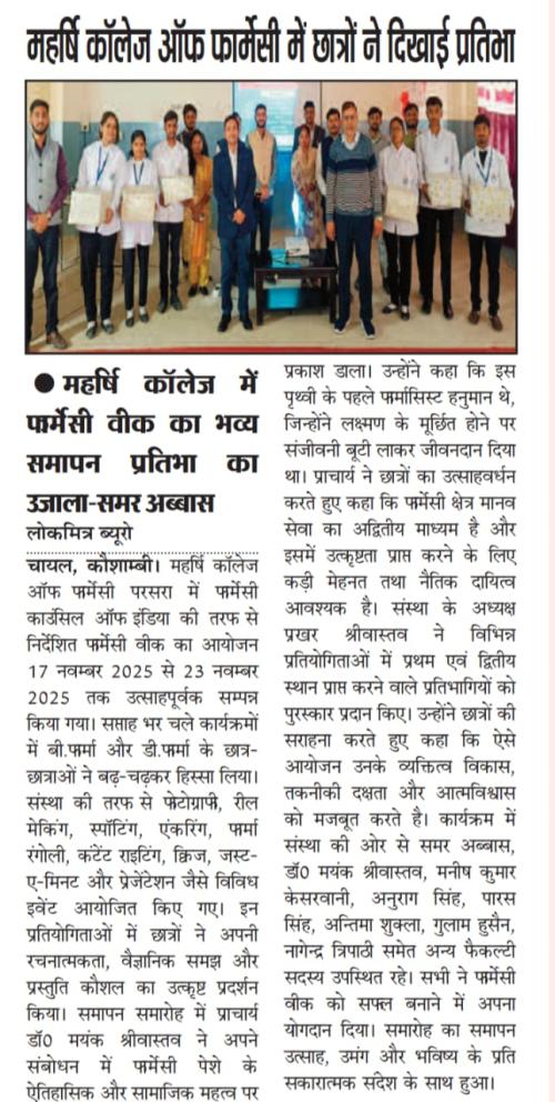 LOK MITRA BUREAU MEDIA COVERAGE OF MAHRISHI COLLLEGE OF PHARMACY OF NATIONAL PHARMACY WEEK - 2025