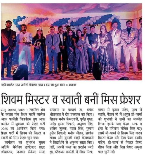 JAGRAN MEDIA COVERAGE OF MAHRISHI COLLEGE OF PHARMACY OF FRESHERS PARTY - 2025